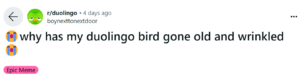 Duolingoアプリのデュオの顔がシワシワになったのはバグでも老化でもなく、Duolingo社の戦略だそうです。